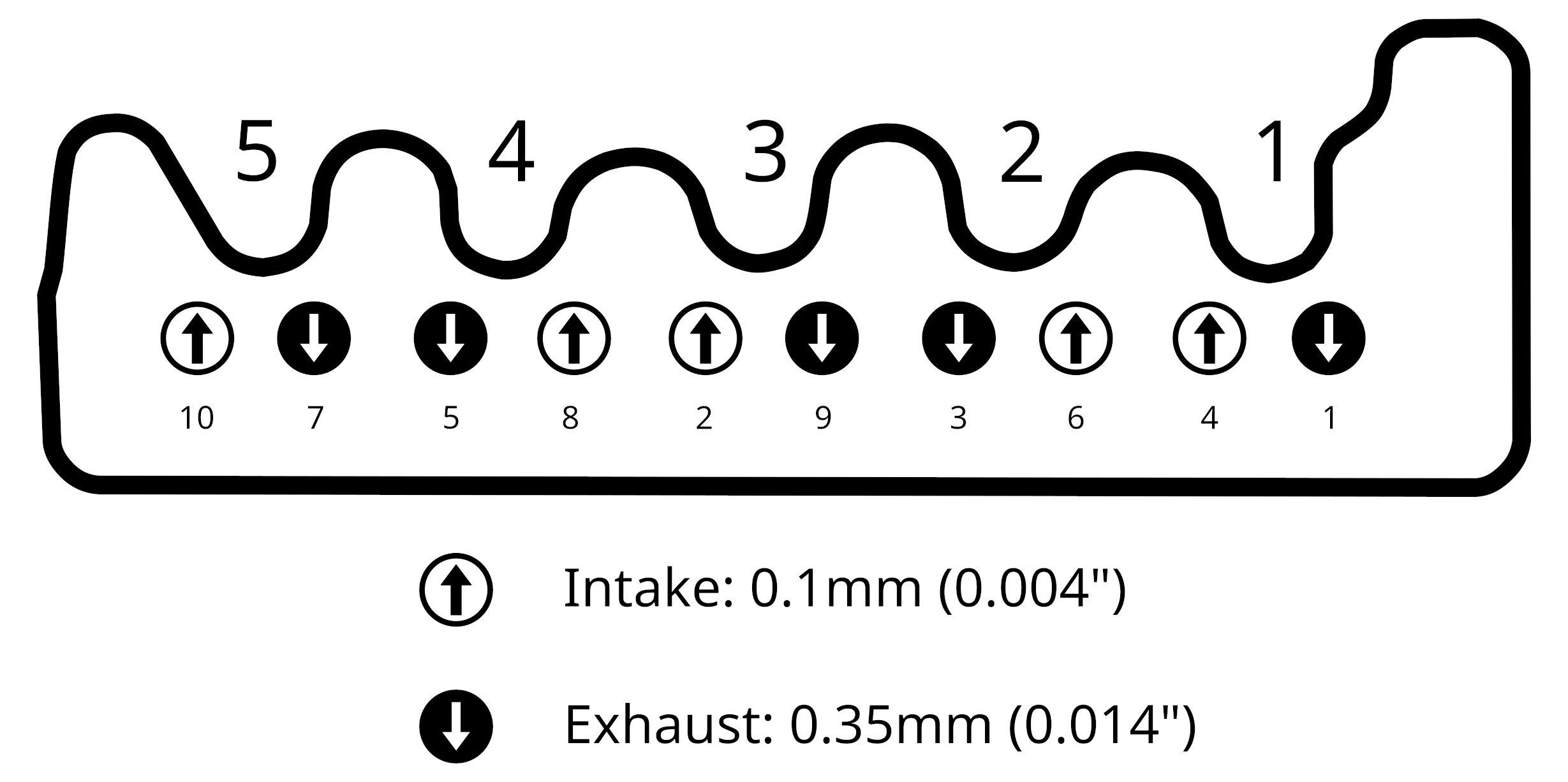 As a note, you don’t need to start with #1, you can start wherever your engine is currently turned to be in sequence for, just ensure you check and adjust all the valves, print the chart out and mark off each one with a permanent marker or your oily finger while you’re doing the adjustments.